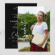 Montrez votre fierté avec ce faire-part/invitation de remise de diplôme simple et classique recto-verso. Le recto comporte une photo de votre diplômé, et le verso en noir et blanc présente une typographie sans empattement et manuscrite. Remplacez simplement la photo par celle de votre diplômé et ajoutez les détails. La couleur de fond noire peut être modifiée pour coordonner avec les couleurs de votre école ou de votre fête.