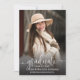 Faire-part de remise de diplôme avec photo et écriture élégante, carte de fin d'études avec police script et photo de portrait en pleine page sur le devant avec nom et détails de la remise de diplôme. Le verso comporte une deuxième photo avec des détails supplémentaires. Cliquez sur le bouton modifier pour personnaliser ce design.