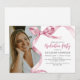 Donnez une touche d'élégance à votre célébration de fin d'études avec nos invitations de graduation chic et tendance. Ornées d'un ruban rose aquarelle sophistiqué noué en forme de nœud et de votre photo préférée, ces invitations allient avec élégance le style et la sophistication. Notre fonctionnalité de personnalisation facile à utiliser vous permet d'inviter vos proches en toute simplicité. De plus, l'option de téléchargement numérique est disponible pour ceux qui aiment allier moderne et traditionnel.