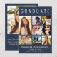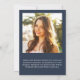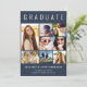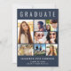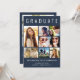 Élégant faire-part de remise de diplôme bleu foncé pour célébrer le diplômé avec "DIPLÔMÉ" en haut en grande typographie blanche, un collage de sept photos et son nom, année de promotion et école en typographie blanche moderne. Au verso, ajoutez une photo supplémentaire et un message personnalisé.