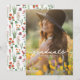 Faire-part de remise de diplôme bohème moderne avec des fleurs sauvages lumineuses. Avec des teintes roses, pêches et vertes, des fleurs botaniques inspirées des fleurs sauvages et des jardins rustiques aquarellés avec une verdure subtile et une typographie moderne et bohème sur fond blanc. Avec votre plus belle photo sur le devant.