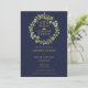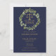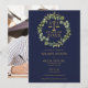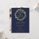 Avec une élégante guirlande de verdure botanique et une typographie dorée classique sur fond bleu marine, ce faire-part de remise de diplôme de faculté de droit peut être personnalisé avec la photo de votre diplômé au verso. Conçu par Thisisnotme©