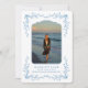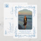 Les faire-part de remise de diplôme de style côtier avec carte postale et cadre floral bleu sont le moyen idéal pour annoncer la réussite de votre diplômé. Le faire-part ressemble à une carte postale. Ce design bleu et blanc a un look classique.