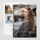 Un faire-part de remise de diplôme élégant et moderne recto-verso avec une belle police de caractères calligraphiés. Ce design avec une seule photo mettra en valeur votre photo préférée de fin d'études. Le verso de la carte comporte quatre autres photos et un espace pour les détails d'une fête de remise de diplôme ou tout autre message que vous souhaitez ajouter.