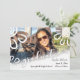La photo de votre diplômé est l'élément visuel principal de cette carte d'annonce de remise de diplômes. Remplacez simplement l'image temporaire ! La photo est mise en valeur par un trio de fleurs graphiques blanches fantaisistes. Elles ont été ajoutées individuellement (avec trois autres au dos) afin que vous puissiez les positionner où vous le souhaitez, en fonction de votre propre photo. Au bas de votre photo, disposé à l'horizontale, figure le mot "graduate" dans une belle police de caractères cursive moderne. Le coin inférieur a été superposé d'un graphique à dégradé ombré blanc qui masque un peu la photo et facilite l'ajout de tous les détails textuels. || Le mot "graduate" a été transformé en fichier image afin que vous puissiez profiter d'une de mes polices favorites. Il y a des champs de texte dans l'invitation pour le nom du diplômé, le lycée, la promotion et la date de remise des diplômes. Les polices, tailles et couleurs de ces champs de texte peuvent être