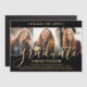 Partagez la joie d'une remise de diplôme de lycée ou d'université avec des faire-part magnétiques personnalisés noirs et dorés comprenant 3 photos. Les images et le texte de ce modèle sont faciles à personnaliser, et les couleurs sont simples à modifier grâce à l'outil de conception Zazzle. Incluez tous les détails de votre choix, tels que les informations sur l'invitation à la fête, les distinctions spéciales, le titre du diplôme, la citation inspirante préférée, les coordonnées du diplômé ou les projets d'avenir. Le dos magnétique permet aux familles et aux amis de les afficher facilement. Le design moderne noir et or présente une fausse toque de diplômé à effet de feuille métallique, une calligraphie élégante, une typographie traditionnelle et trois photos de votre choix, telles que des photos de fin d'année ou des images de la cérémonie de remise des diplômes. Veuillez noter que la couleur dorée est une impression et non une feuille