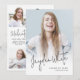 Faire-part de remise de diplôme de nom de script moderne noir avec 4 photos, simple et amusant. Personnalisez-le avec vos propres photos et informations sur la fête de remise de diplôme.