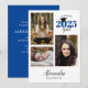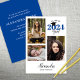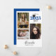 Cette invitation de remise de diplôme propre et moderne propose un collage de 3 photos sur fond blanc. Le design simple est accentué de bleu sur un fond blanc.