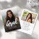 Célébrez votre réussite avec ce faire-part de remise de diplôme au lycée photo écriture manuscrite moderne. Caractérisé par une écriture élégante, des accents de feuille luxueux et un espace pour une photo chérie, ce design élégant et stylé ajoute une touche personnelle à votre étape spéciale. Parfait pour inviter la famille et les amis à se joindre à la célébration.