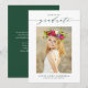Annoncez votre remise de diplôme à votre famille et à vos amis avec cette carte de fin d'études personnalisable de la promotion 2022. Elle présente une calligraphie fantaisie verte et une typographie classique. Personnalisez ce faire-part de remise de diplôme simple en ajoutant votre photo, votre nom et le nom de votre école. Cette carte de faire-part de remise de diplôme avec photo est parfaite pour les remises de diplôme de lycée ou d'université.