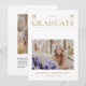Partagez votre célébration spéciale avec votre famille et vos amis. Cette carte de faire-part de remise de diplôme moderne présente une typographie simple élégante et une mise en page épurée avec un thème de couleur noir et or. Vous pouvez personnaliser le texte et les photos. Des fournitures et des cadeaux de fête de remise de diplôme assortis sont disponibles dans ma boutique BaraBomDesign.