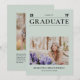 Partagez votre célébration spéciale avec votre famille et vos amis. Cette carte de faire-part de remise de diplôme moderne présente une typographie simple élégante et une mise en page épurée avec un thème de couleur noir et vert sauge clair. Vous pouvez personnaliser le texte et les photos. Des fournitures et des cadeaux de fête de remise de diplôme assortis sont disponibles dans ma boutique BaraBomDesign.