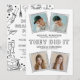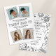 Célébrez et partagez la grande réussite de vos diplômés dans un style audacieux et ludique avec cette moderne Annonce de remise de diplôme et Invitation à la fête. Conçue dans une palette tendance noir et blanc, ce design fantaisiste présente des cadres de gribouillis dessinés à la main qui mettent en valeur les photos de vos diplômés de manière amusante et mémorable.