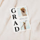 Annoncez votre réussite exceptionnelle avec une annonce de remise de diplôme élégante qui allie design moderne et touches personnelles. Sur le côté gauche, le mot "Grad" est empilé de manière frappante en caractères gras noirs, créant une déclaration visuelle forte. Sur le côté droit, mettez en valeur votre parcours avec deux images chéries, une en haut et une en bas. Au milieu, présentez clairement tous les détails importants de la remise de diplôme, en veillant à ce que la famille et les amis aient toutes les informations nécessaires pour célébrer votre réussite. Cette annonce élégante et soigneusement conçue capture l'importance de votre réussite et partage votre joie avec ceux qui vous ont soutenu.