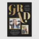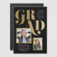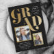Une invitation et un aimant d'annonce de remise de diplômes photo moderne avec une superposition de caractères métalliques gras et un design à deux photos.