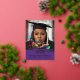 Cette moderne annonce de remise des diplômes avec confettis utilise 5 photos et est élégante et parfaite pour un diplômé avec le violet et l'or comme couleurs de leur école ! Célébrez le nouveau diplômé avec cette amusante annonce de remise des diplômes !