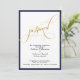 Dans cette pièce distinctive, une police de calligraphie élégante a été utilisée pour créer un graphique qui indique "reporté". L'image a été embellie avec un effet de dorure métallique factice. Des accents de bandes dorées coordonnées créant une sorte de bande ont été ajoutés pour un résultat discret et sophistiqué. Utilisez les champs de modèle pour ajouter vos informations personnelles. Le texte de fond peut être changé en n'importe quelle couleur que vous préférez. N'hésitez pas à nous contacter pour toute demande spéciale ou pour une aide à la personnalisation. // 141 //