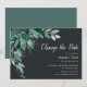 Le faire-part de remise de mariage botanique chic présente des feuilles d'eucalyptus verts luxuriants illustrés en aquarelle. Personnalisez avec vos détails mariages alignés à droite dans un mélange de typographies de blocs traditionnels et de calligraphie moderne sur un riche arrière - plan non noir. Cartes inversées à vert de forêt solide.