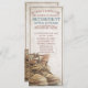Faire-part de retraite avec des bottes en dentelle patinées et vieilles en style vintage. Le texte sur le genre, l'année, le texte honorifique, la date, l'heure, le lieu de célébration et le RSVP peuvent être customisés.