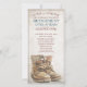 Faire-part de retraite avec des bottes en dentelle patinées et vieilles en style vintage. Le texte sur le genre, l'année, le texte honorifique, la date, l'heure, le lieu de célébration et le RSVP peuvent être customisés.