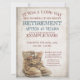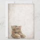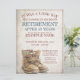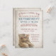 Faire-part de retraite avec des bottes en dentelle patinées et vieilles en style vintage. Le texte sur le genre, l'année, le texte honorifique, la date, l'heure, le lieu de célébration et le RSVP peuvent être customisés.