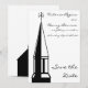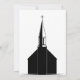 Une invitation de mariage "save the date" avec une illustration graphique en noir et blanc représentant un clocher d'église et une croix. Le verso présente une église simplifiée.