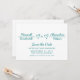 Annonce de sauvegarde de date d'équation du cœur mignonne et fantaisiste en turquoise avec une équation mathématique amusante « réunissant » deux cœurs/personnes. Ce design de nerd est un choix charmant pour un couple aimant les mathématiques ou tout couple souhaitant quelque chose de simple mais avec une touche de fantaisie. Facile à personnaliser, il suffit d'ajouter vos détails de mariage dans les champs de texte fournis. Cliquez sur « Personnaliser » pour trouver plus d'options de personnalisation.