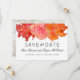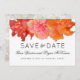 Faire-part de mariage de sauvegarde de l'oeillet orange pour un thème tropical hawaïen. Trois fleurs d'hibiscus exotiques de rose foncé, rose clair et orange font une large bordure en haut de cartes blanches avec du texte noir avec de l'espace pour inclure les noms complets du couple.