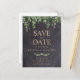Sauvegarder la date ! Annoncez votre mariage à vos amis et à votre famille avec ces cartes "save the date" rustiques en ardoise et eucalyptus. Personnalisez avec les noms, la date du mariage, le lieu. Ajoutez le site web et toute autre information au verso. Ces cartes uniques de mariage avec verdure feront une impression durable, vos invités s'assureront de sauvegarder la date ! COPYRIGHT © 2020 Judy Burrows, Black Dog Art - Tous droits réservés. Carte postale d'annonce "Save The Date" rustique en ardoise avec verdure eucalyptus.