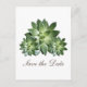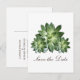 Carton de sauvegarde de succulente simple sophistiqué et élégant représentant un trio de plantes succulentes vertes vibrantes. Ce design élégant est parfait pour annoncer un mariage printanier ou estival avec un jardin luxuriant. Facile à personnaliser avec vos détails de mariage. Cliquez sur "Personnaliser" pour trouver plus d'options de personnalisation.