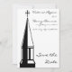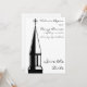 Une invitation de mariage "save the date" avec une illustration graphique en noir et blanc représentant un clocher d'église et une croix. Le verso présente une église simplifiée.