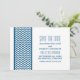 Annonce de Save the Date avec Bordure Chevron chic et moderne avec une bordure simple à motif chevron en bleu foncé et blanc. Ce design élégant donnera le ton pour un mariage élégant. Facile à personnaliser, il suffit d'ajouter vos détails de mariage dans les champs de texte fournis. Cliquez sur "Personnaliser" pour trouver plus d'options de personnalisation.