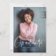 Faites de votre diplôme un faire-part mémorable avec notre moderne et tendance "Modern White Script Overlay 4 Photo Graduation Card". Cette élégante carte de faire-part présente un montage de 4 photos, une typographie manuscrite de script de calligraphie et une superposition de texte blanc sur un arrière - plan noir. C'est parfait pour les lycéens et les diplômés d'université qui célèbrent leur diplôme en 2023. Vous pouvez également personnaliser la carte avec vos propres photos et texte pour la rendre unique et spéciale.