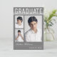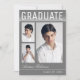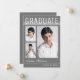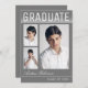 Cartes de faire-part de graduation tendance, moderne et élégant, avec éléments de conception du texte moderne avec écriture manuscrite script signature. Trois photos d'études supérieures mettent en évidence le devant de la carte avec "Graduate" accentué dans un dégradé blanc élégant. Le dos de la carte offre des espaces de texte personnalisés pour des informations sur votre graduation et votre futur voyage. Écriture blanche sur le gris brumeux royal ou customisez facilement l'arrière - plan pour correspondre à la couleur primaire de votre école ou toute couleur de votre choix. Parfait pour les diplômes du lycée, du collège et de l'université.
