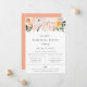 Invitation au dîner de répétition avec une élégante composition florale de jardin botanique à l'aquarelle. Design typographique chic et moderne avec des fleurs roses, pêche, lilas, orange et blanches. Le dos de la carte présente une couleur pêche unie.