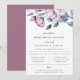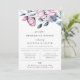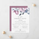 Élégante composition florale à l'aquarelle dans des nuances de mauve pourpre et de bleu poussiéreux, invitation au dîner de répétition. Conception de typographie chic et moderne. Le dos de la carte présente une couleur pourpre vin mauve foncé uni. Conçu dans le cadre de notre collection florale Bleu Poussiéreux Mauve.