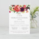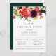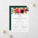 Feuillage de style bohème aquarelle, plumes et arrangement floral dans les tons violet, rouge, rose, pêche et vert, invitation à dîner répétitif. Design de typographie chic et moderne. Le dos de la carte est de couleur vert émeraude. Conçu pour correspondre à notre collection Bohemian Blooms.