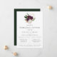 Bouquet floral élégant, invitation au dîner de répétition. Fleurs violettes foncées et blanches ivoire avec un feuillage vert riche et doré. Conception typographique chic et moderne. Le dos de la carte présente une couleur vert foncé uni.