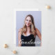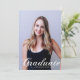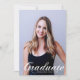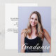 Diplômé est écrit en élégant script blanc flourish sur votre photo de portrait senior fait une belle carte d'annonce de remise de diplôme minimaliste. Personnalisez avec votre nom et votre lycée ou université promotion 2026 sous la typographie cursive et ajoutez vos détails personnels au dos de ces cartes de diplômé superposées de texte classe.