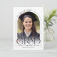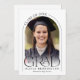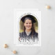 Cette faire-part de graduation minimaliste en noir et blanc présente une photo, un cadre en arc et une élégante typographie moderne.
