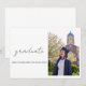 Annoncez votre étape importante avec style grâce à cette élégante carte de photo de remise de diplômes. Dotée d'un design moderne avec un script doré sautillant, cette annonce personnalisée est le moyen idéal pour partager votre réussite avec votre famille et vos amis. Elle met en valeur votre portrait de fin d'études tout en adressant un "félicitations au diplômé" chaleureux à la promotion. 🎓 Envoyez un avis sophistiqué et mémorable de votre réussite. ✨ Achetez maintenant pour personnaliser cette superbe annonce de remise de diplômes au script doré !
