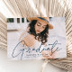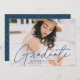 Célébrez la grade avec notre élégante faire-part de graduation photo. Le faire-part de graduation affiche la photo du diplômé avec "Graduate" dans une superposition de script de calligraphie moderne marine. Personnalisez le devant de la faire-part moderne de graduation en ajoutant le nom du diplômé, le nom de l'école et l'année de graduation. Le faire-part est rétro avec un motif géométrique à la mode marine et pointillé blanc. Le design est parfait pour les diplômés du secondaire et du collège.