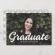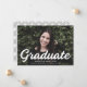 Faire-part de graduation simple et élégante avec la photo horizontale du diplômé avec "Graduate" dans une écriture blanche audacieuse. Personnalisez le faire-part de remise de diplômes photo en ajoutant le nom du diplômé, le nom de l'école et l'année de remise de diplômes. La faire-part s'inverse pour afficher un motif d'arc géométrique noir et blanc.