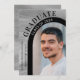 Célébrez votre classe de fin d'études secondaires 2024 avec cette faire-part moderne et élégante. Ce magnifique design gris et noir présente une arche avec une typographie moderne audacieuse. Facilement personnalisable avec votre photo et vos détails.