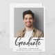 Faire-part moderne de remise des diplômes avec la photo de la diplômée et "Graduate" dans un script audacieux contemporain. Ajoutez leur nom, année de classe et école en typographie simple.