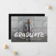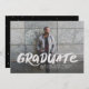 Ce faire-part de graduation comporte une photo pleine image avec le mot "gradué" en gras brosse type en blanc. Cette carte élégante offre également de la place pour le nom du diplômé, l'école et l'année et tous les autres détails que vous voulez partager. Le dos est un noir coordonné, pointillé de confettis blancs et a de la place pour une deuxième photo et plus de texte. Le texte peut inclure des plans d'avenir ou une invitation à une fête de remise de diplômes. Il peut également être laissé en blanc. C'est une excellente façon de célébrer un diplôme et d'annoncer l'information à des amis et à la famille. Cette carte cool est également en coordination avec les accessoires et la décoration de la collection Lea Delaveris Design Bold Graduate Overlay.