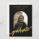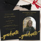 Célébrez la remise de diplôme de votre fille avec style grâce à cette élégante carte d'annonce de fin d'études en noir et or, parfaite pour les diplômés du lycée, de l'université ou de l'enseignement supérieur. Cette invitation de remise de diplôme moderne et tendance avec photo sous une arche présente un arrière-plan noir sophistiqué avec une calligraphie dorée luxueuse - une combinaison saisissante qui met en valeur cette étape importante. Personnalisez le design avec la photo préférée de votre diplômé et ajoutez facilement les détails de l'événement personnalisés grâce au modèle éditable convivial. Que vous planifiez une fête de remise de diplôme, une réception ou que vous envoyiez des annonces officielles, cette carte de fin d'études imprimable est une belle façon de partager son accomplissement avec vos amis et votre famille. Conçue par l'artiste Catherine Sweetman, cette invitation de remise de diplôme personnalisée allie l'élégance classique au style contemporain, créant un souvenir que vous chérirez. Idéale pour les annonces de remise de diplôme 2025, les cartes de photos de fin d'études, les invitations de remise de diplôme noir et or et les invitations de