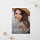 Blanc | Diplômé en typographie Faire-part moderne. Chic, simple et moderne, cette carte de faire-part de graduation présente un style "gradué" de typographie en blanc. Il comprend deux photos et du texte pour personnaliser le nom, l'année de classe et le message de faire-part.