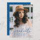 Faire-part Diplômé Moderne Bleu Script Photo Graduation