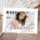 Célébrez la grade avec notre élégante faire-part de graduation photo. Le faire-part de graduation affiche la photo du diplômé avec "Graduate" dans une superposition de script de calligraphie moderne violet. Personnalisez le devant de la faire-part moderne de graduation en ajoutant le nom du diplômé, le nom de l'école et l'année de graduation. La faire-part s'inverse pour présenter une motif géométrique à pois mauve et blanc tendance. Le design est parfait pour les diplômés du secondaire et du collège.